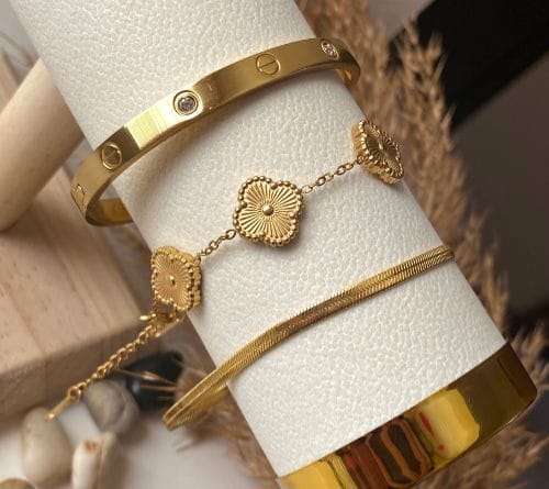 The Clover Chain: A delicate chain bracelet adorned with charming gold-tone clover motifs.